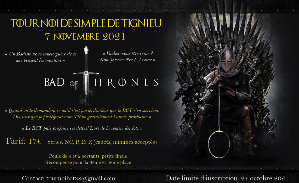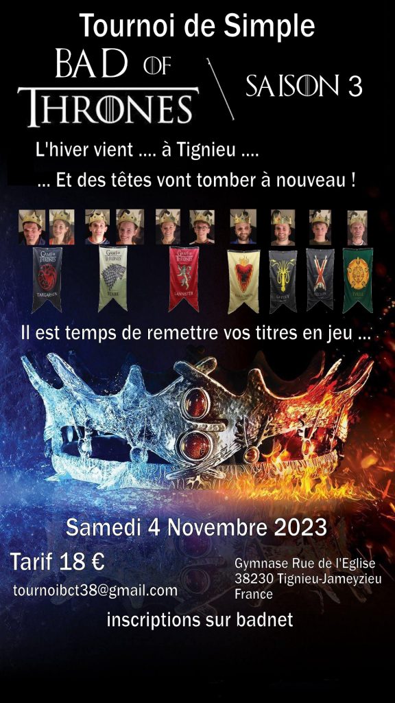 01/11/2025 – Tournoi de Simple – BAD OF THRONE