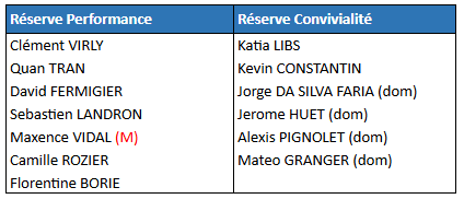 En cas d’absence ou de blessures, des ajustements seront effectués à partir des autres équipes 😉