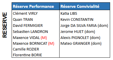 En cas d’absence ou de blessures, des ajustements seront effectués à partir des autres équipes 😉